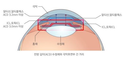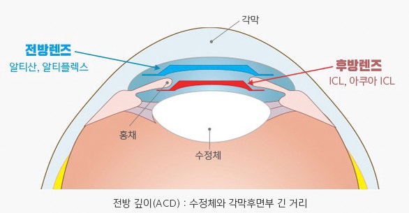 안녕하세요 #온누리스마일안과 #김부원장입니다.렌즈는 삽입되는 위치에 따라 전방렌즈와 후방렌즈로 나뉩니다. 홍채를 기준으로 홍채 앞을 전방, 홍채 뒤를 후방이라고 합니다. 전방 렌즈는 얼티플렉스라는 렌즈, 후방 렌즈는 ICL이라는 렌즈가 거의 90% 후반 이상 사용되고 있습니다. 드물지만 렌즈 삽입술을 하면 눈 안의 안내 렌즈가 합병증을 일으킬 수 있습니다. 전방 렌즈는 후방 렌즈에 비해 각막 내피세포의 저하, 후방 렌즈는 전방 렌즈에 비해 백내장의 발생 경향이 있습니다. 전방 렌즈가 적합한 경우
