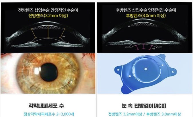 하지만 최근 연구에 따르면 렌즈가 대폭 업그레이드되면서 수정체와 거리가 가까워 생긴 백내장 부작용도 현저히 줄었습니다. 그래서 최근에는 높은 비율로 후방 렌즈가 많이 사용되고 있습니다.