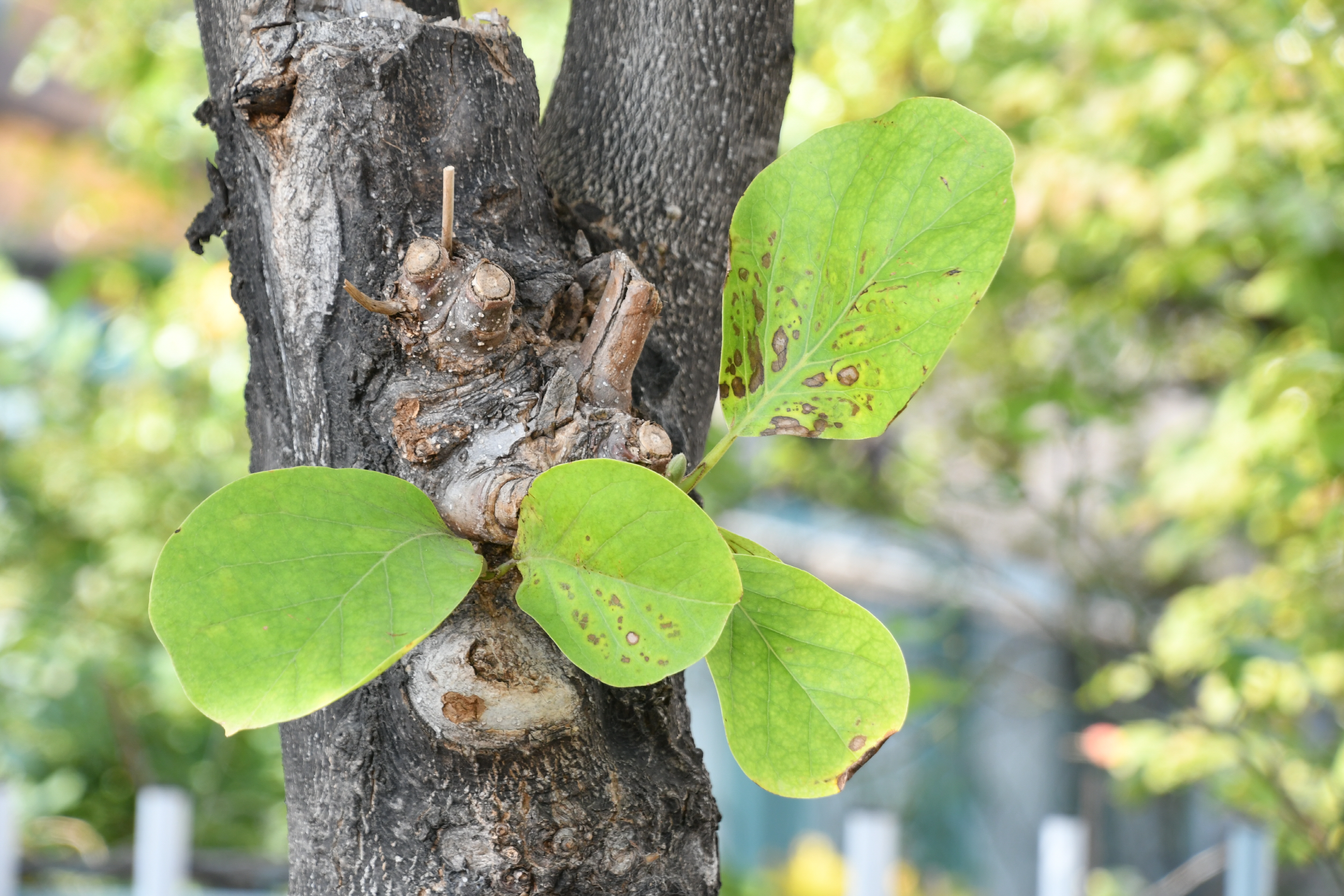 – 잘린 끝 옆에 새 잎이 자랍니다.